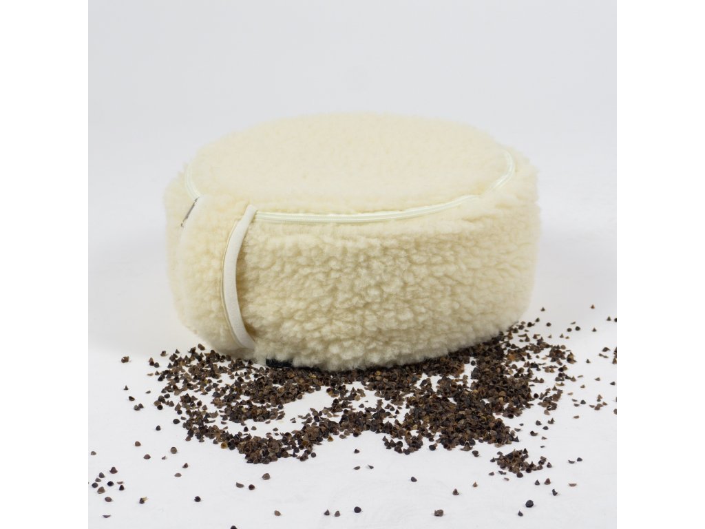 Külső párnák: 100% ausztrál merinó, Belső párnák töltete: hajdina; huzat színe: krémsárga; Párnák átmérője: 30 cm, Párnák magassága: 15 cm, Mosható huzat: Igen, Hordtáskában szállítjuk: Igen; Súly: 1,75 kg