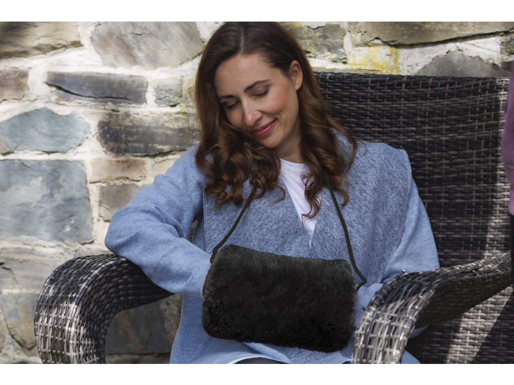 A meleg birkabőr kézmelegítő férfiak és nők számára egyaránt alkalmas. A kézmelegítő oldalán egy zsinór van varrva, amely a nyak mögé helyezhető, hogy a kézmelegítő jobban tartson.
