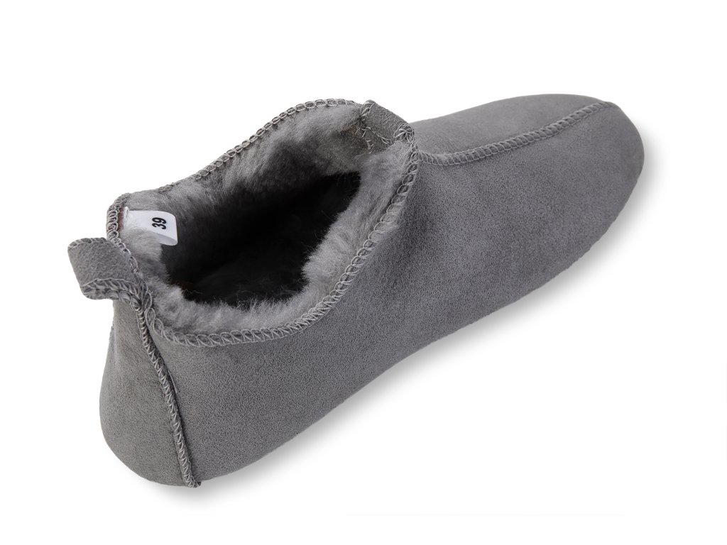 Felület: 100% természetes birkabőr; Belső talpbetét: birkaszőrme; Talp: kemény; Szín:  természetes világosszürke; Cipő típusa: belebújós, házi cipő; Kapható méretek: 38 - 46