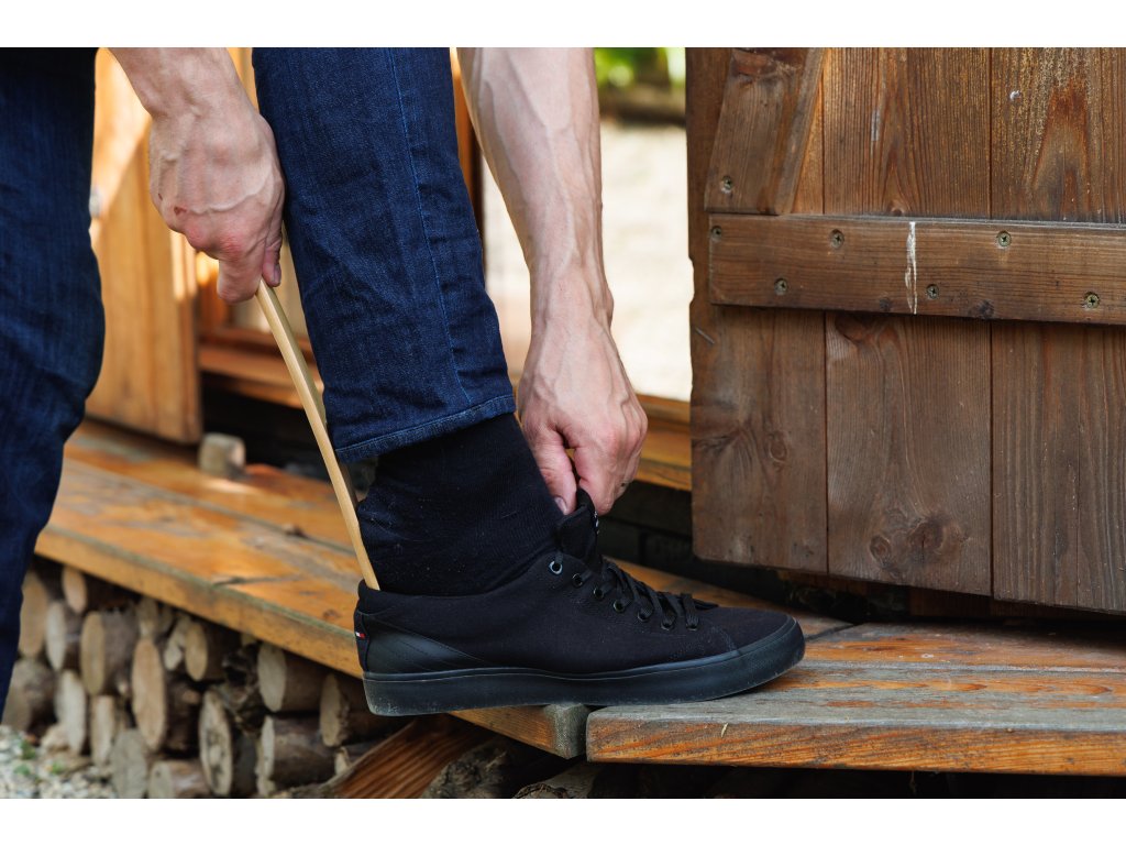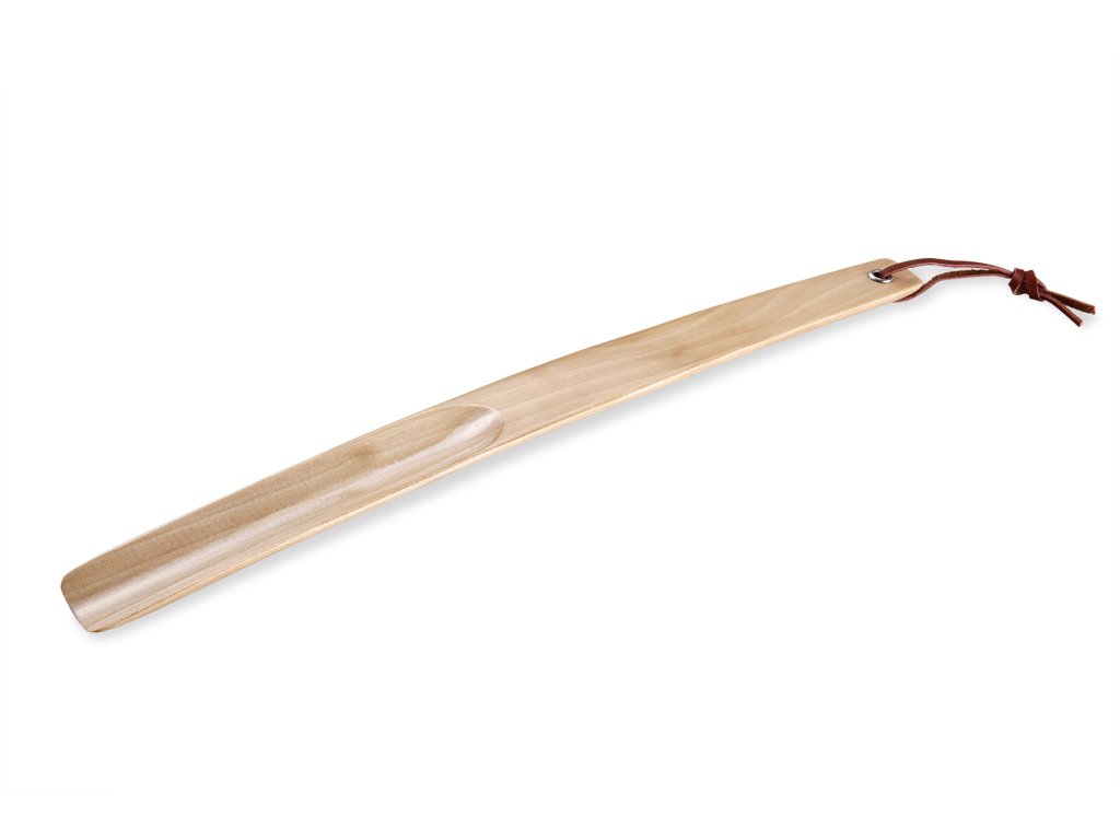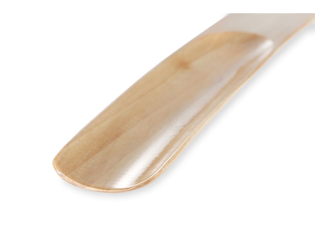 A szegélyező kanál természetes árnyalatú fából készült. A kanál felülete sima lakkozott, így nem húzza a zokni vagy cipő felületét. A cipő felhúzása így nagyon kellemes. A fa cipőkanál a tetején egy műbőr zsinór hurokkal van ellátva. A kanálnak így nem kell a cipők tetején vagy a bútorokon „heverésznie”, hanem felakasztható, hogy mindig kéznél legyen.