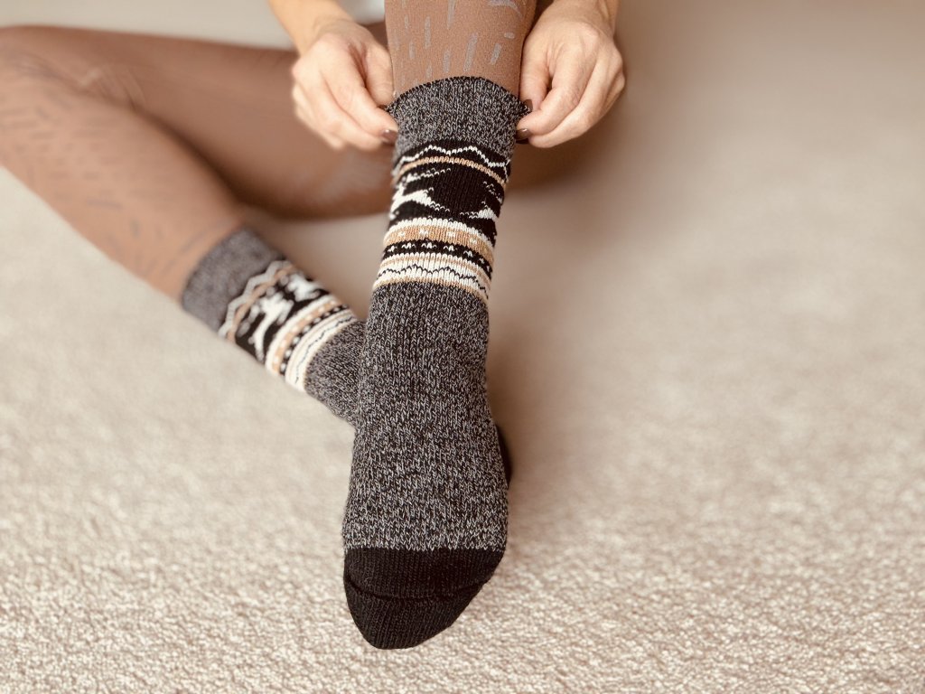 Színes, meleg gyapjú zoknik Natural Wooline Wool nagyon puha és lágy gyapjúból. A gyapjú zokni szett 3 pár zoknit tartalmaz különböző mintákkal. A minták megfelelnek a képeken láthatóknak. A felhasznált anyagnak köszönhetően a zokni alkalmazkodik a lábfej méretéhez.