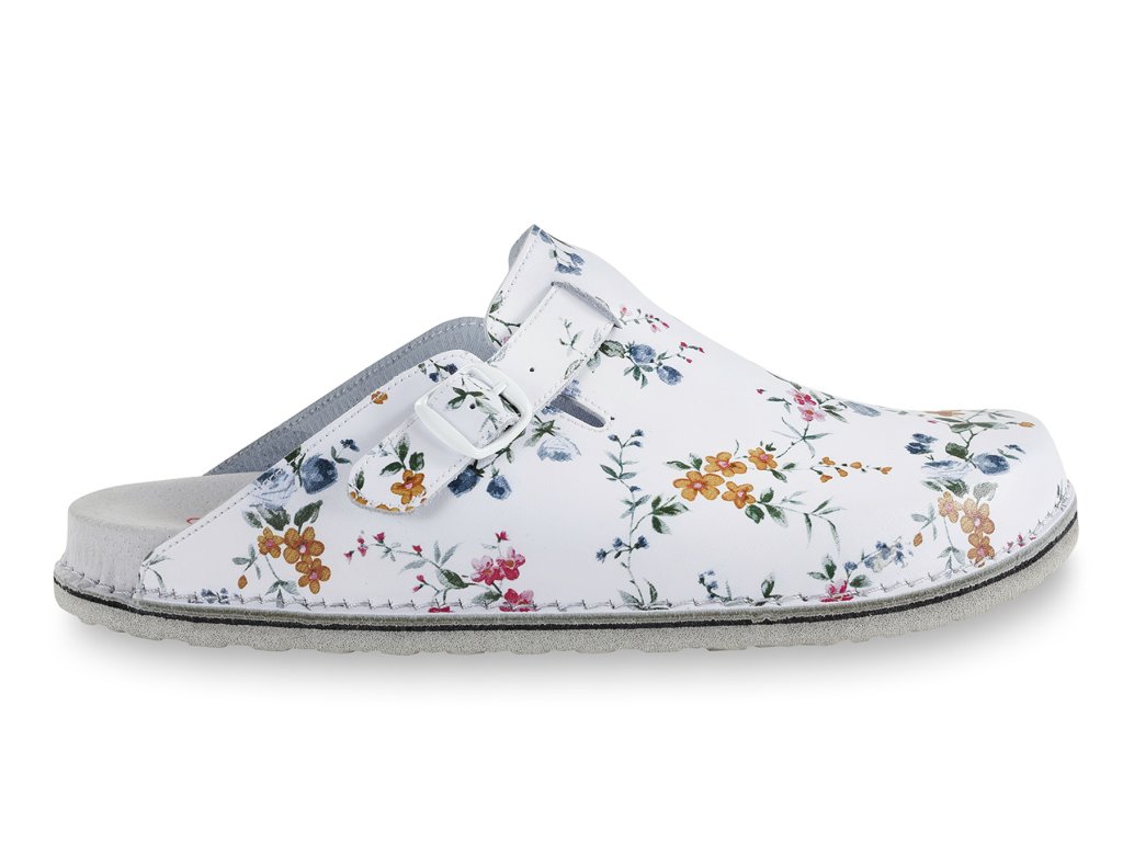 Ortopéd zárt orrú bőr női papucs virágmintával egészségügyi ortopéd cipő!