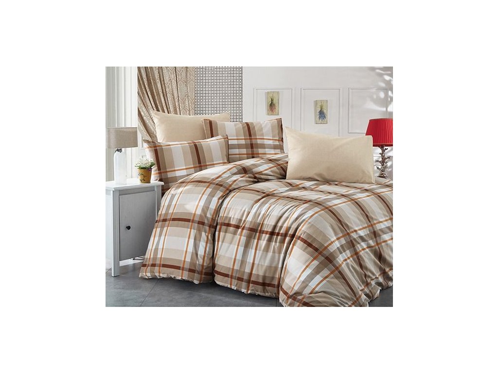 Pamut paplanhuzat párnával, barna Káró motívummal