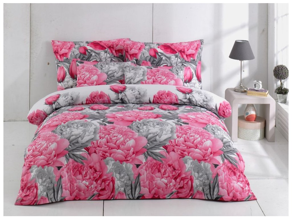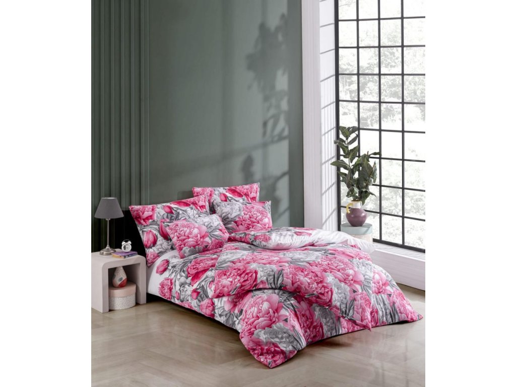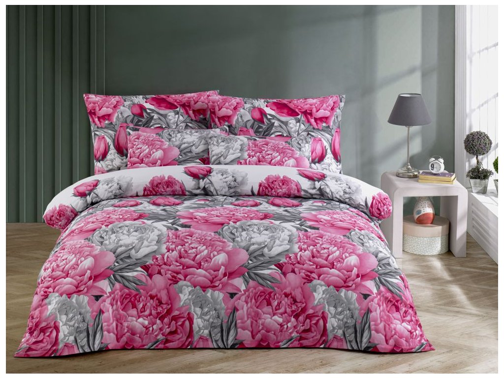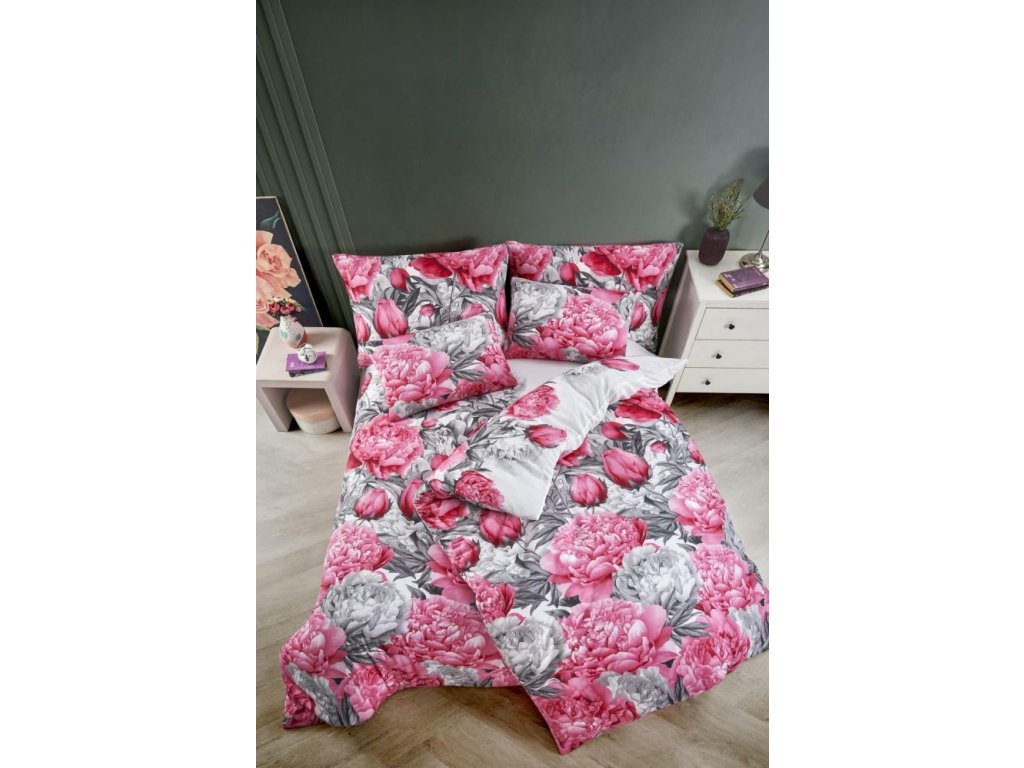 Vászon anyag: 100% pamut; A csomag tartalma: 1 x párna 70 x 90 cm, 1 x takaró 140 x 200 cm; Szín: rózsaszín, szürke; Motívum: Peony Lux; Karbantartás: mosás 40 °C-on, Rögzítés: gombos