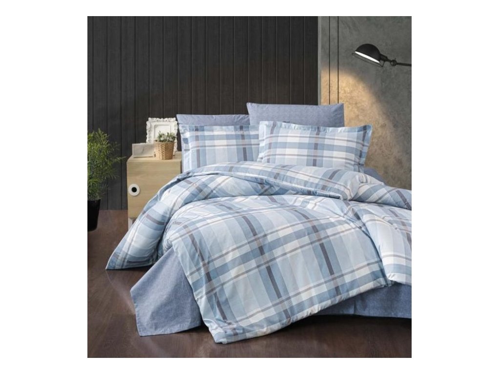 A pamut ágyneműk a a kék és a világoskék különböző árnyalataiban készülnek. Az ágynemű modern és időtlen, kockás elemekből álló motívummal készült. A párna- és a paplanhuzat ugyanazzal a kétoldalas motívummal rendelkezik.