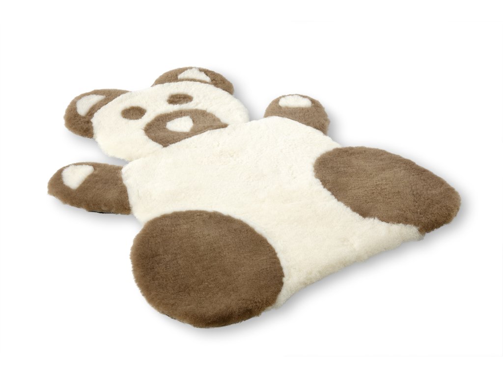 A természetes dekoratív szőnyeg Panda medve alakban kellemes és békés hangulatot kölcsönöz bármely belső térnek. A szőnyeg a báránybőr maradványainak összevarrásával készül, ami szintén garantálja a szőnyeg kiváló hőkomfortját.