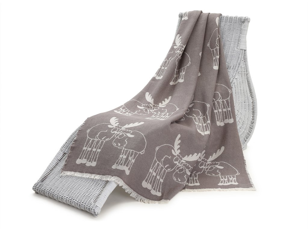 A kellemesen puha, aranyos jávorszarvas motívummal ellátott pléd 100% pamutból készült. A pléd nagyon puha és puha tapintású. A 140 x 190 cm-es méretnek köszönhetően egyszerre két ember is beburkolódzhat a plédekbe.