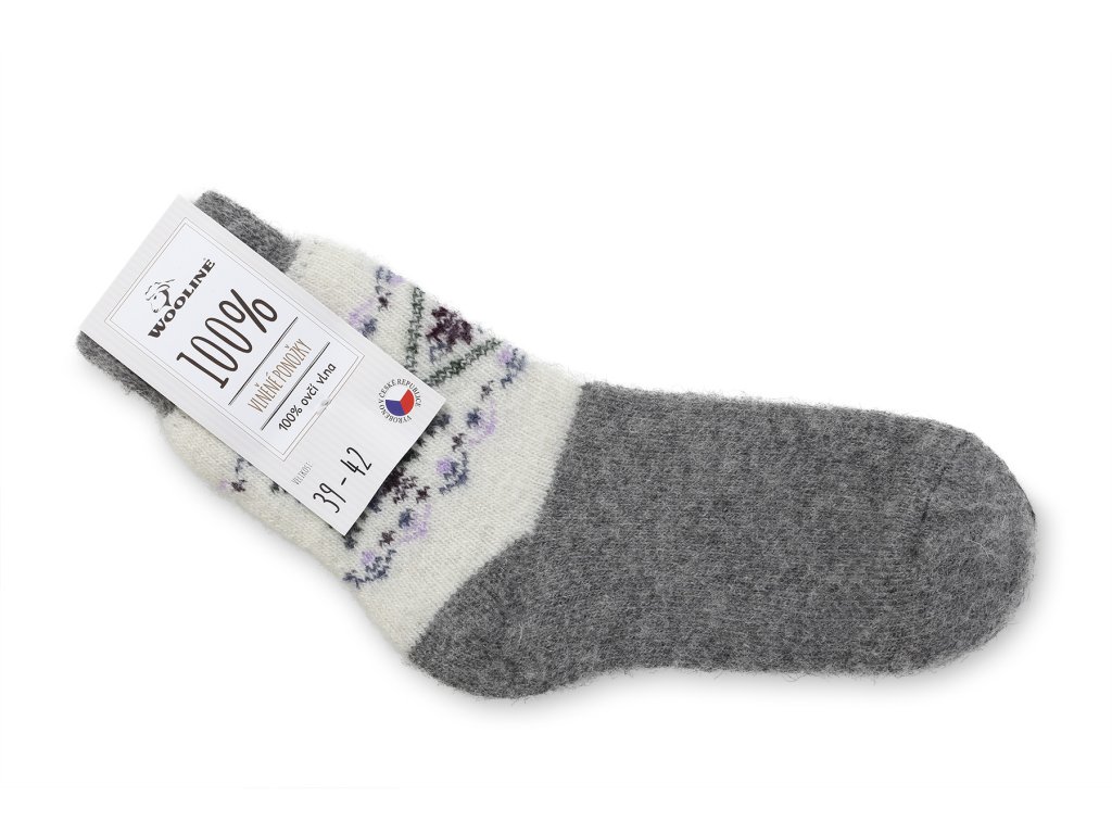 A mintás gyapjú zoknik 100% birkagyapjúból készültek gépi kötéssel, amely lágyított és nagyon finom tapintású. A felhasznált anyagnak köszönhetően a zokni alkalmazkodik a lábfej méretéhez.