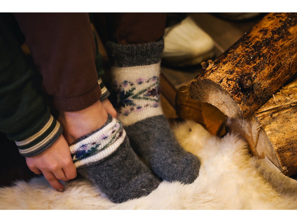 A birkagyapjúból készült zoknik ideálisak otthoni viseletre és erős igénybevételre is - például télen hegyi túrákhoz.