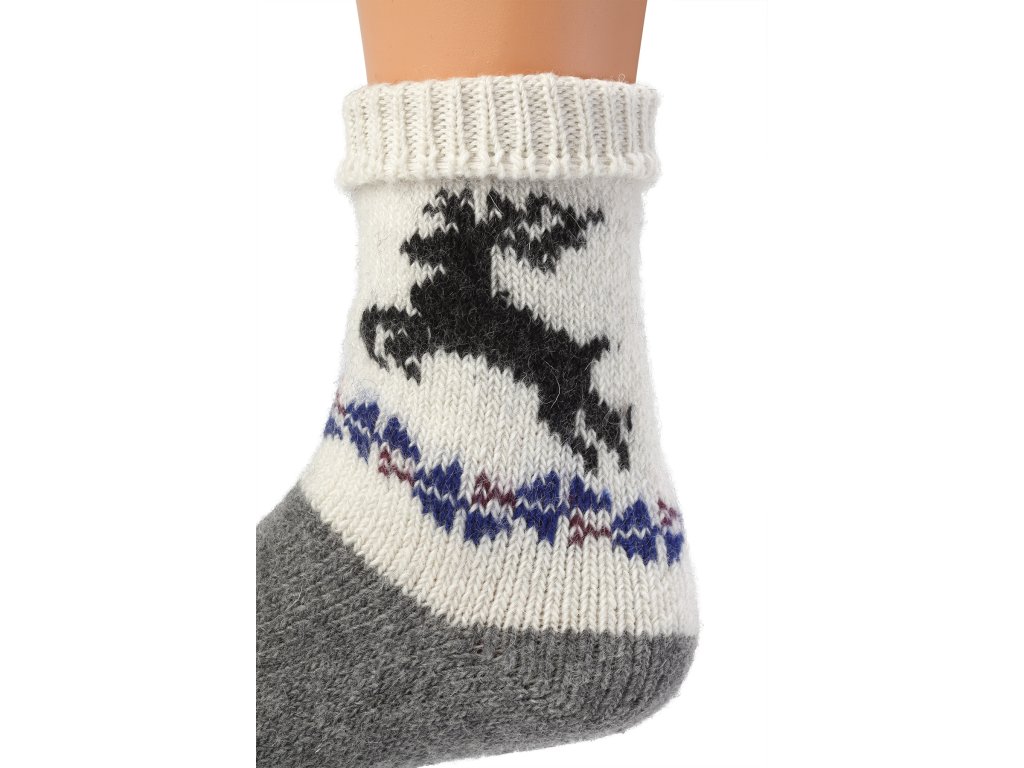Anyag: 100% birkagyapjú, nagyon puha tapintású; Ajánlott: hölgyeknek és uraknak is, Méret: 34-36, 36-38, 39-42; Szín: sötétszürke, fehér színű ugró rénszarvas motívummal