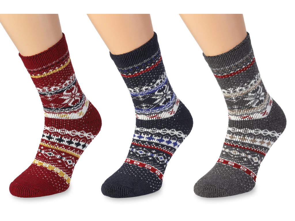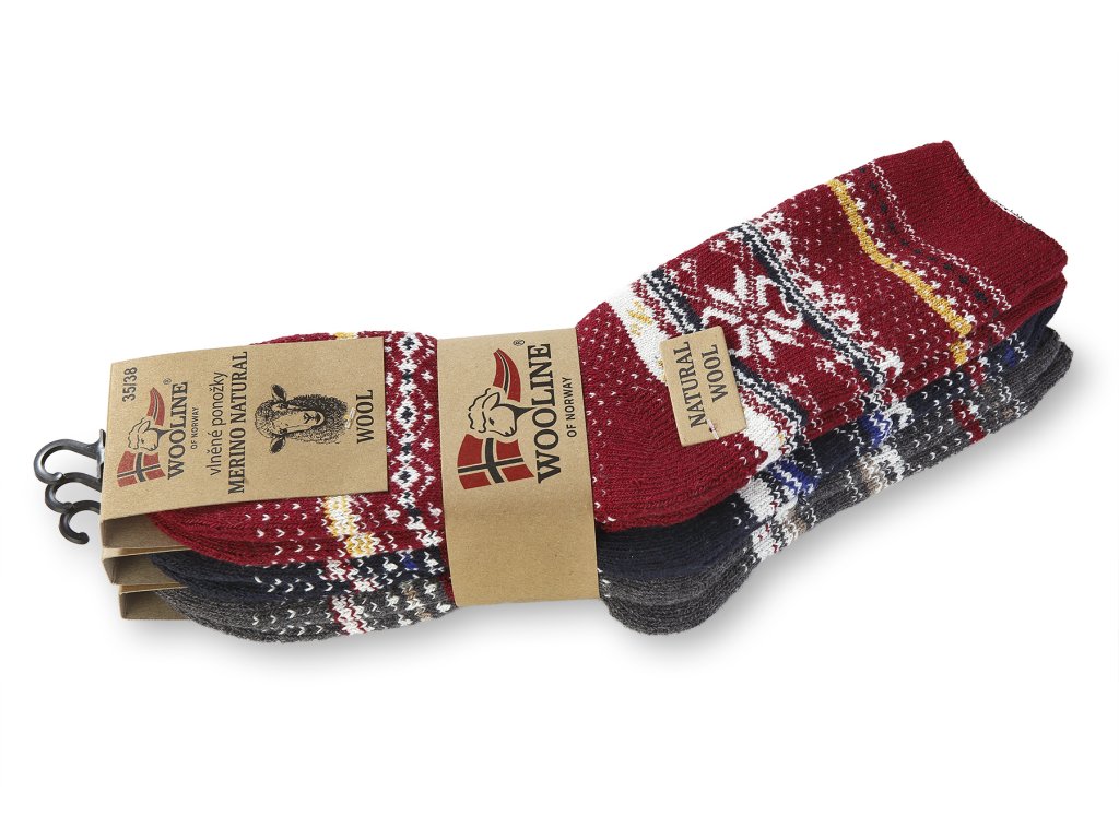 Puha gyapjú zoknik norvég mintával, 3 az 1-ben Wooline Natur szett nőknek
