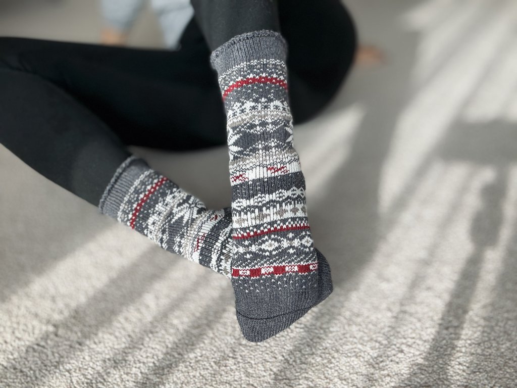 Anyag: 95% gyapjú, 5% elasztán; Szánva: hölgyeknek, Méret: 35-38, 39-42, Szín: piros, szürke, kék - norvég motívumok