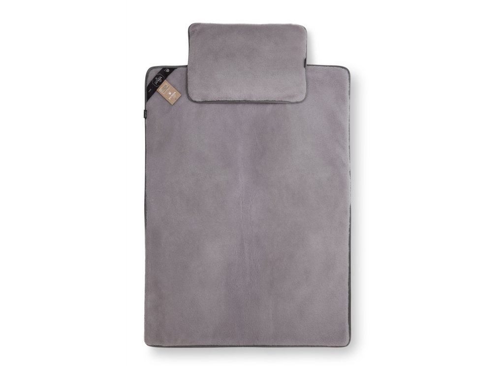 A kétoldalas babatakaró kétféle anyag kombinációjából készül. A plédek hátoldala 100% pamutból készült, amelynek rózsaszín alapszíne van. Ez a rózsaszín alap alvó csillagok és hold mintájával van díszítve. Egy alvó mackó teszi teljessé a nyugtató összhatást. A színe kétféle gyapjú kombinációjából készül, a legfinomabb ausztrál merinó gyapjúból, amelyet alpaka gyapjúszálakkal gazdagítottak. A hátoldal színe szürkéslila. Ez a gyapjú takaró 95%-ban tartalmaz legfinomabb gyapjút, az ausztrál merinó gyapjút + 5% alpaka gyapjút. Az alpaka gyapjú és a pamut kombinációjának köszönhetően a takaró egész évben használható. A kétoldalas takaróból és párnából álló gyermek szett a legkisebbek számára is ajánlott.