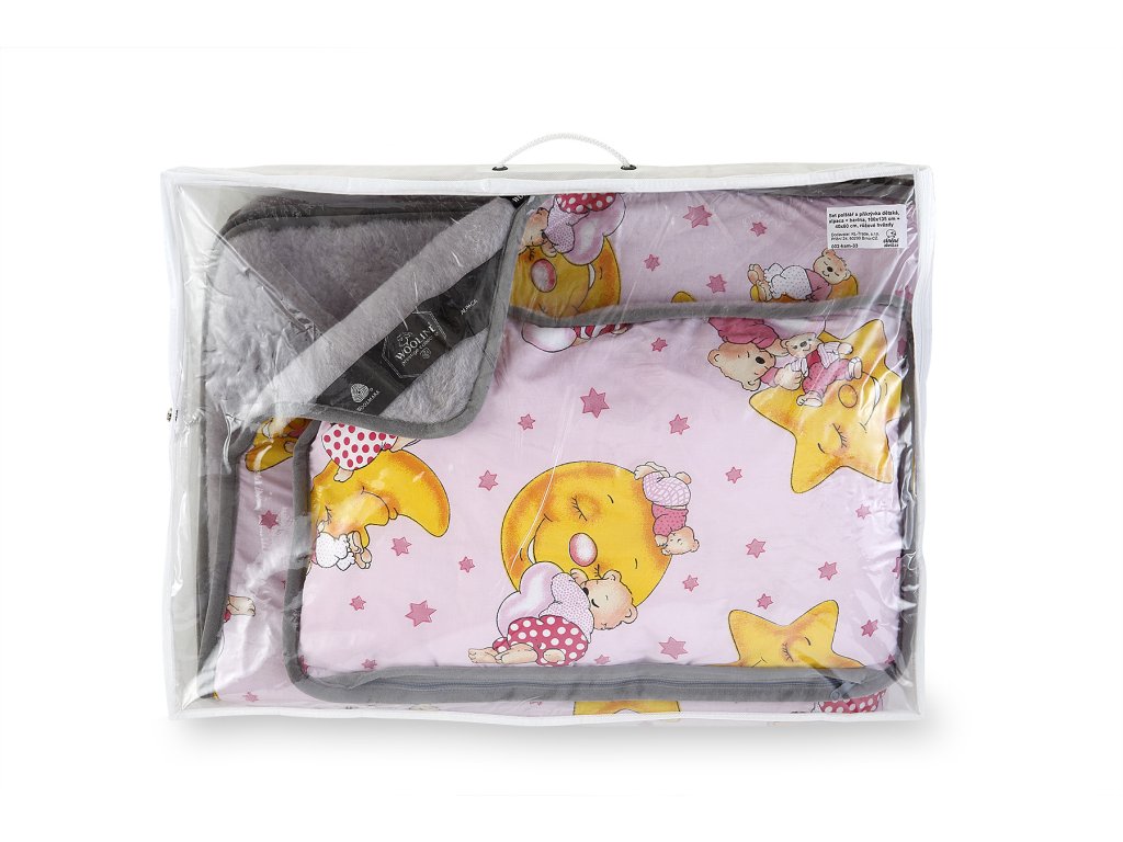 Rózsaszín gyermek ágynemű szett párnával és takaróval alpakagyapjú és pamut kivitelben csillagmintával Korlátozott példány! Kapható, amíg a készlet tart!