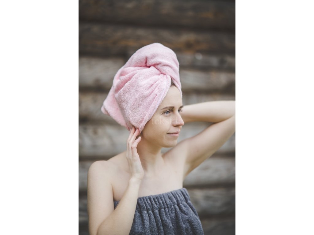 A szaunaturbán 100% puha, fésült pamutból készült. A szaunaturbánokat a szaunában való használatra tervezték. A felhasznált anyagnak köszönhetően puha és finom. A szaunaturbán lágy rózsaszínű, felülete egyszínű, más motívumok nélkül. Segíthet a nedves haj megszárításában, vagy használhatja a szépségápolási kezelések során. Kiváló nedvszívó képességet garantál, és tökéletesen megtartja az alakját a hátsó oldalán található gombos rögzítésnek köszönhetően.