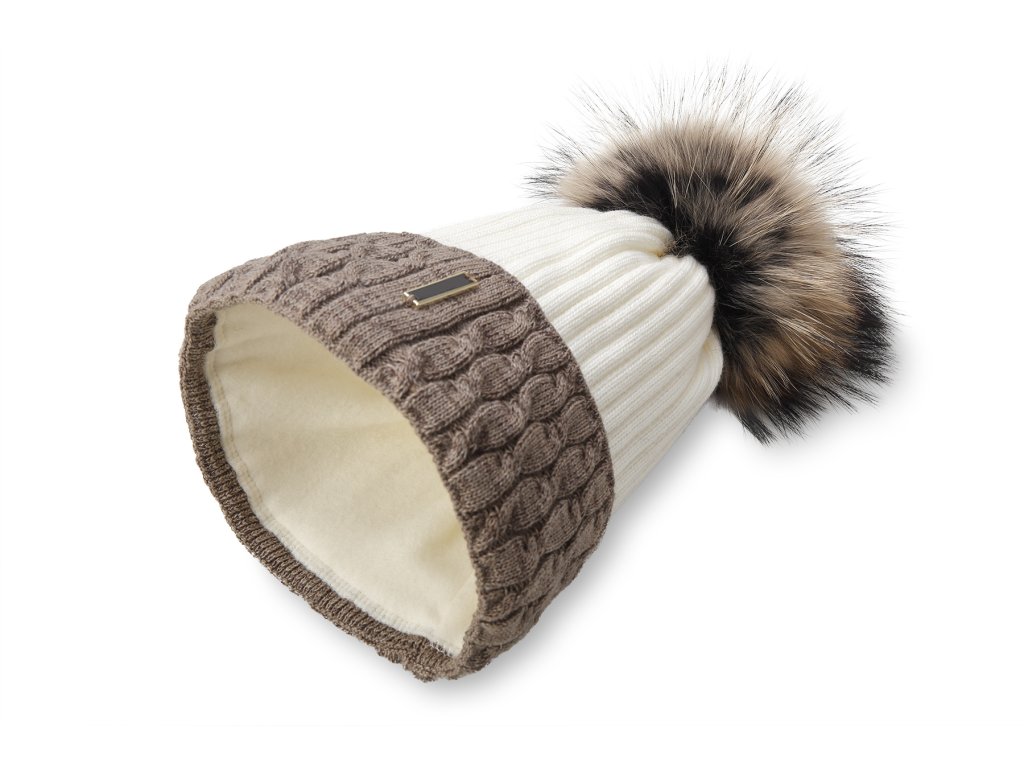 Anyag: 80% akril, 20% gyapjú; Szín: törtfehér és kávébarna; Motívum: a sapka álló kötés, sima mintával, a belső rész nagyon puha gyapjúból készült; Alkalmas: nők; Sapka jellemzői: sapka nagyon jól rugalmas; Méret: 44 -70 cm-es fejkörfogathoz alkalmas ; Sapka magassága pompon nélkül : 21 cm; Pompon magassága: 13 cm; Természetes pompon: IGEN (róka)