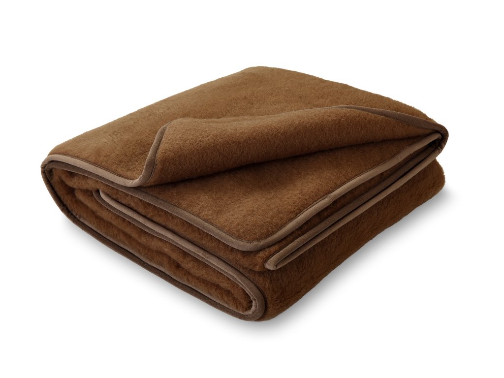 Anyag: 95% ausztrál merinó + 5% tevegyapjú; Kialakítás: egyoldalas - a pléd egy „lap” gyapjúból készült. A pléd körbe van szegélyezve; Szín: a hátoldal és az előlap sötétbarna; Méret: 140 x 200 cm, Súly: 1,5 kg, Súly: 500 - 550 g/m2