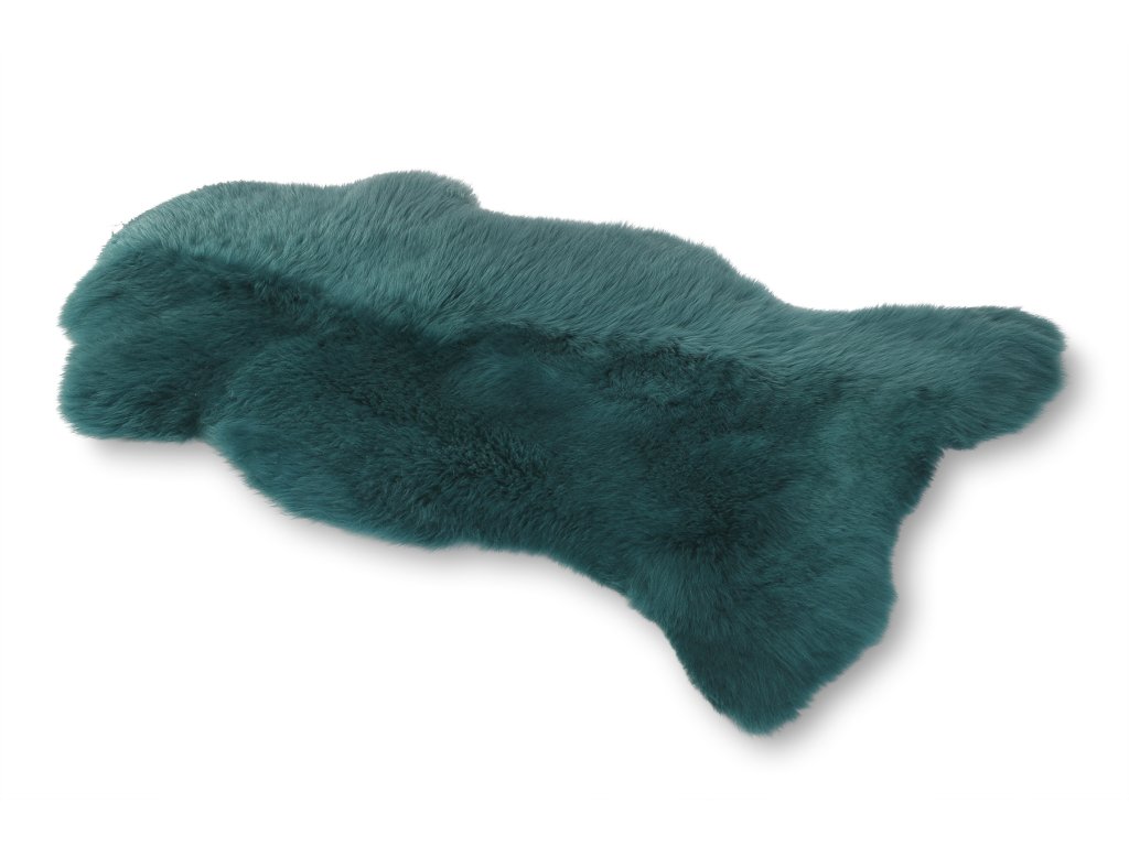 Anyag: festett báránybőr, színe: sötétzöld, mérete: 110 x 60 cm