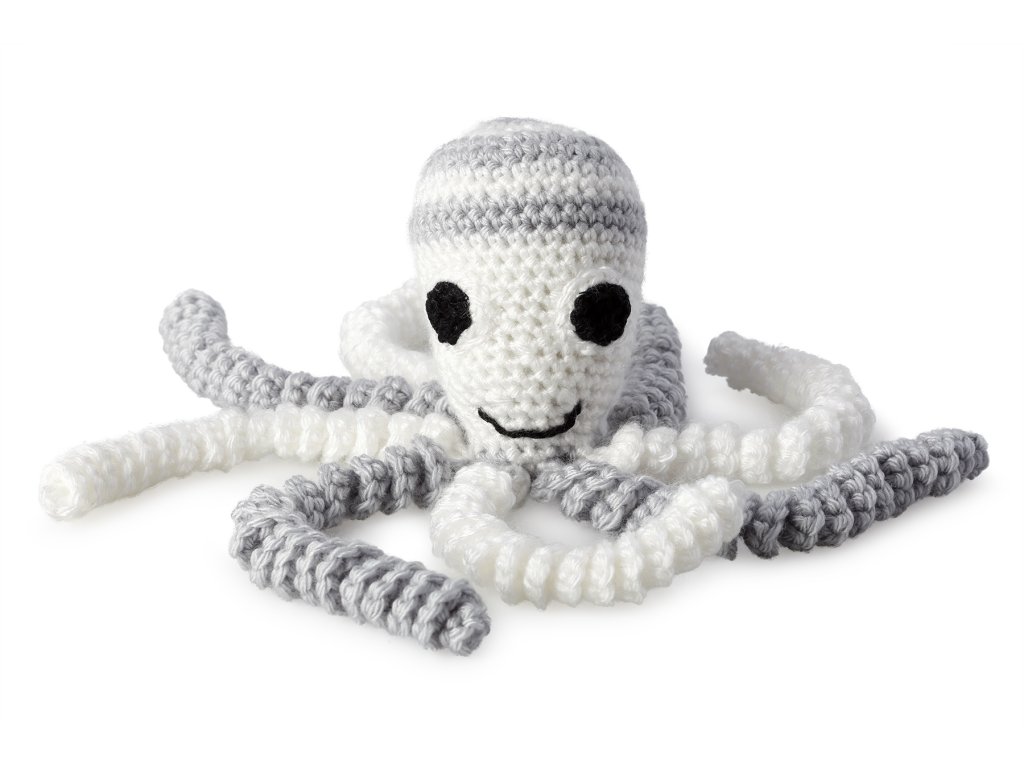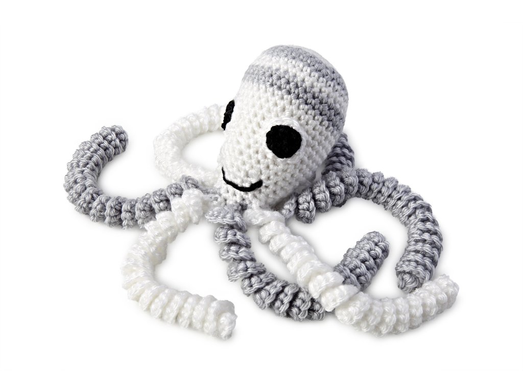 Szürke -fehér színű horgolt polip újszülötteknek KÉZZEL KÉSZÜLT A CSEH KÖZTÁRSASÁGBAN!