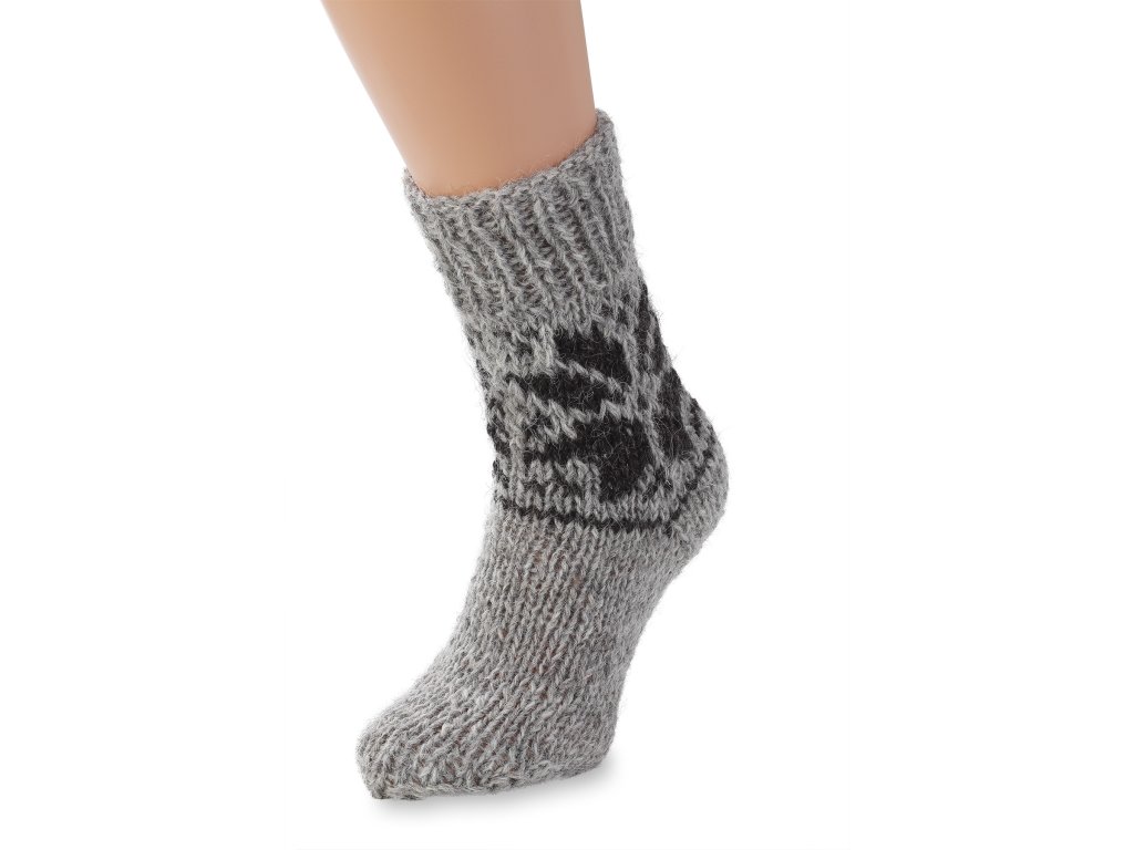 Gyapjú zokni klasszikus 100%-os birkagyapjúból, mégpedig európai merinóból, amelynek nagyon jó hőtani jellemzői vannak. Ez a kézzel kötött zokni nem tartalmaz poliésztert vagy más olyan szálakat, amelyek lágyítanák a zoknit, vagy rugalmasabbá tennék azt. Ez a gyapjú zokni megtartja a formáját, és kissé durvább tapintású.