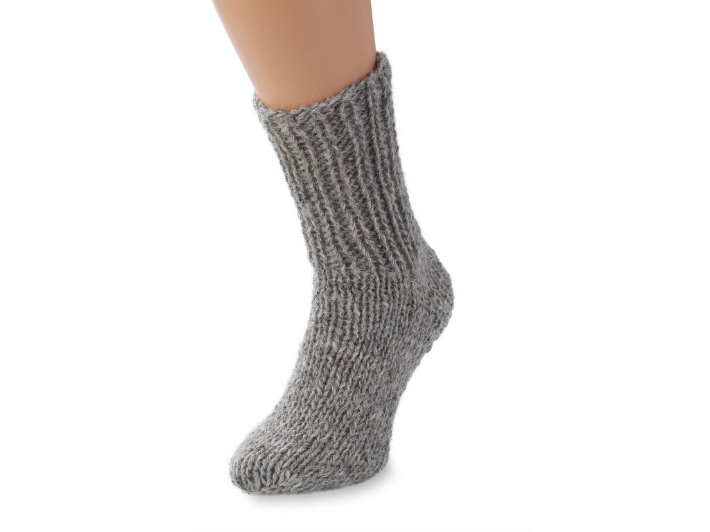 Gyapjú zokni klasszikus 100%-os birkagyapjúból, mégpedig európai merinóból. Ez a kézzel kötött zokni nem tartalmaz poliésztert vagy más olyan szálakat, amelyek lágyítanák a zoknit, vagy rugalmasabbá tennék azt. Ezek a gyapjú zoknik megtartják az alakjukat, és kissé durvább tapintásúak.
