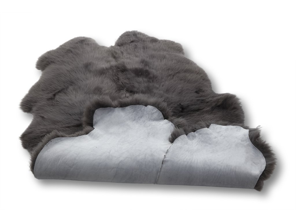 Anyag: festett báránybőr, Szín: szürke, Átlagos méret: 190 x 115 cm, Alak: atipikus