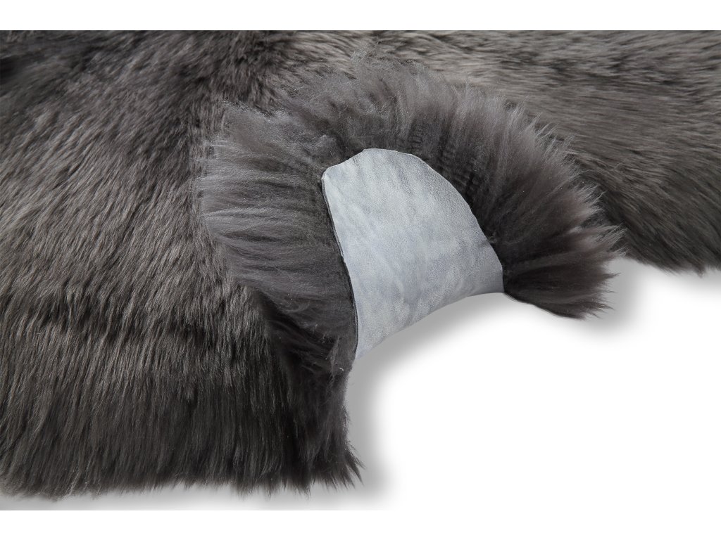 A sötétszürke színű, varrással készült luxus szőnyeg 190 x 115 cm méretű. A szőrme egyedi dekoráció lehet a nappaliban vagy hálószobában.