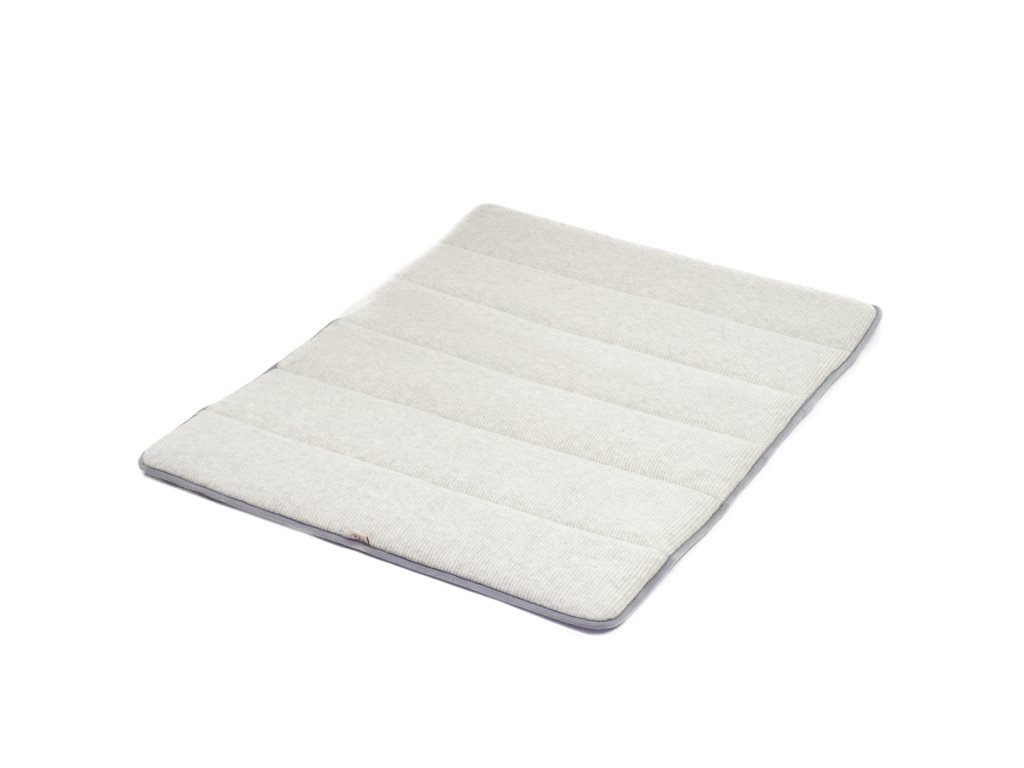 Akutyákszámára készült utazószőnyeg téglalap alakú, a 70 x 100 cm-es méretekkel. A kutya utazószőnyeg külső felülete (hátoldala) 100% ausztrál merinói gyapjúból készült. A természetes gyapjúból párhuzamos keskeny csíkokat szőttek. Nemcsak finom díszítés, de a keskeny csíkokba szőtt gyapjú a gyapjú élettartamát is meghosszabbítja. Az előlap olyan anyagból készült, amely nagyon jól vízálló. A felhasznált anyag taszítja a szennyeződéseket, és nagyon könnyen karbantartható. Az utazószőnyeg speciális varrással van ellátva. Ez a varrás biztosítja, hogy a belső párnázat nem mozdul el használat közben. Az ágy hosszú ideig megőrzi a formáját. Az alkalmazott varrásnak köszönhetően a párna nagyon könnyen összehajtható utazási célokra.