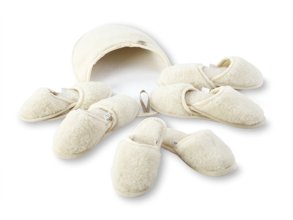 A papucs birkagyapjúból készült és puha talppal rendelkezik. A papucs egy elegáns zsákban van elhelyezve, amely a fülénél fogva felakasztható. Így azonnal fel lehet akasztani, például az előszobába vagy a cipős szekrény mellé, így a házi papucs mindig kéznél van. A papucs a birkagyapjú minőségének köszönhetően egész évben használható. A birkagyapjú kedvező hőszabályozó tulajdonságokkal rendelkezik. Télen szépe felmelegíti, nyáron pedig hűsíti a lábakat.