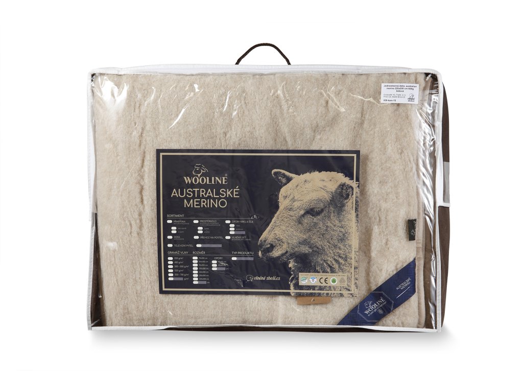 Anyag: 100% ausztrál merinó; Kialakítás: egyoldalas - a pléd egy „lap” gyapjúból készült. A pléd körbe van szegélyezve; Szín: a hátoldal és az előlap krém bézs; Méret: 220 x 200 cm, Súly: 2,6 kg, Súly: 600 g/m2