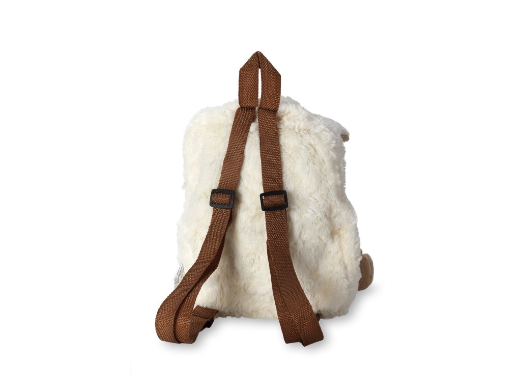 Lágy krémszínű, világos patákkal ( pántok, paták, fej). A háton két állítható pánt található bézs színben. A hátizsák belső rekesze egy belevarrott textilbetétet tartalmaz. Ennek köszönhetően a hátizsák tere megtartja alakját, és a benne lévő dolgok nem fognak „elveszni” a hátizsák sarkaiban.