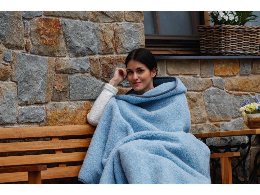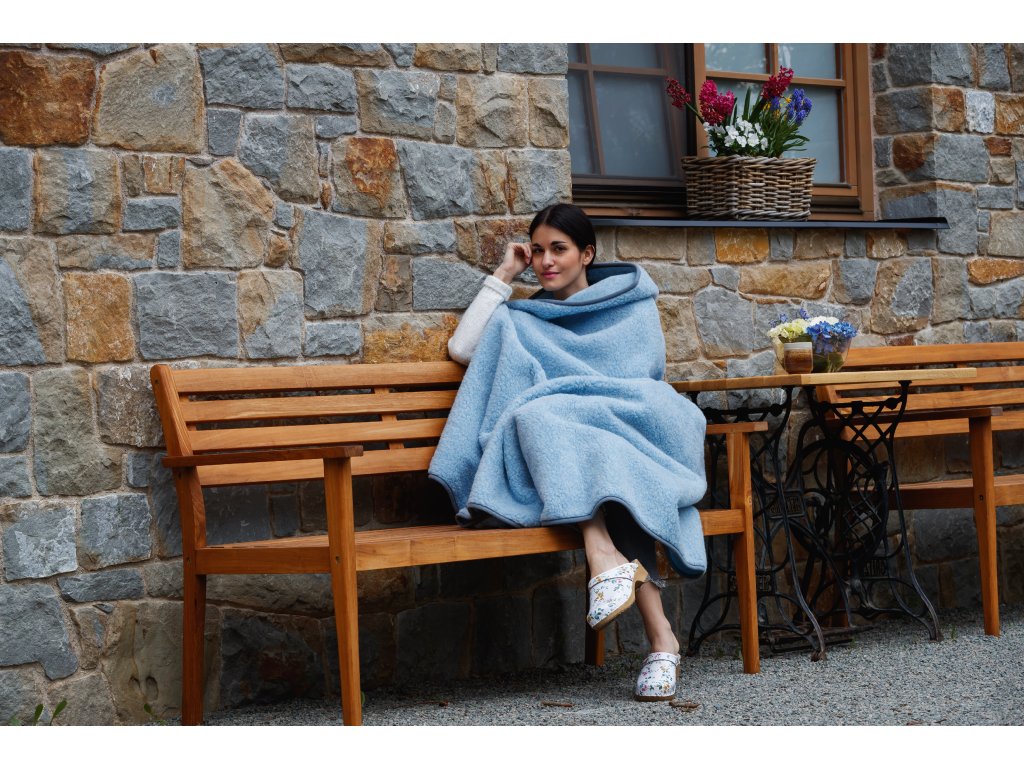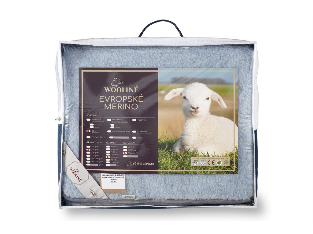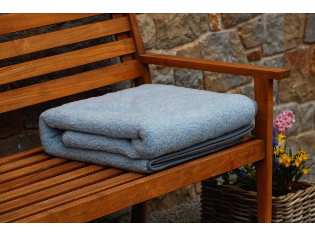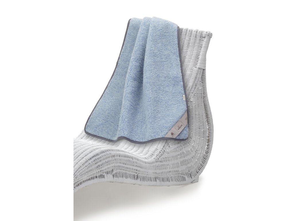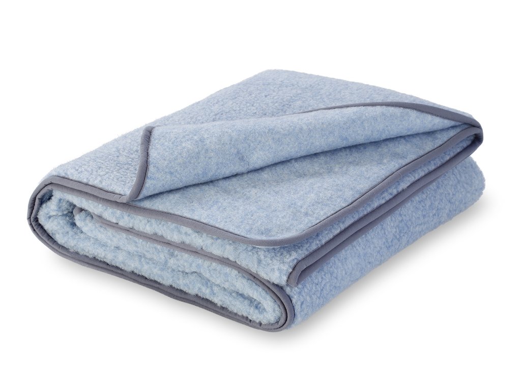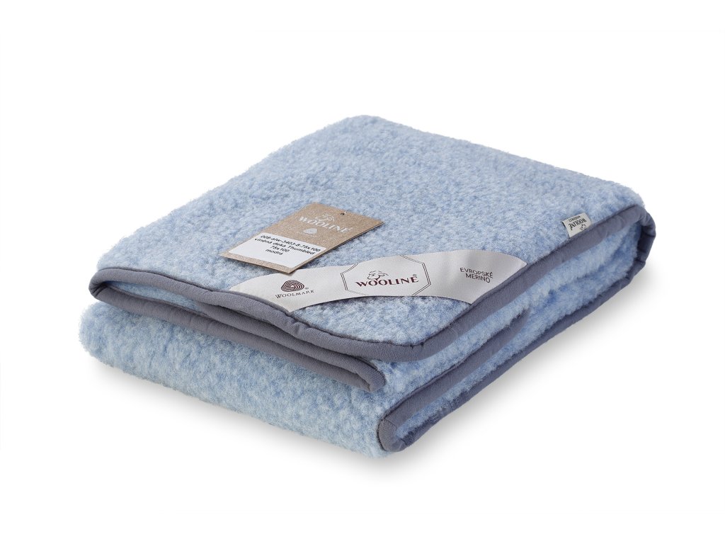 Anyag: 100% európai merinó (100% birkagyapjú), Méret: 75 x 100 cm vagy 140 x 200 cm, Súly: 75 x 100 cm 0,4kg, a méret 140 x 200 cm 1,2 kg, Szín: világoskék, Szálsűrűség: 380g/m2