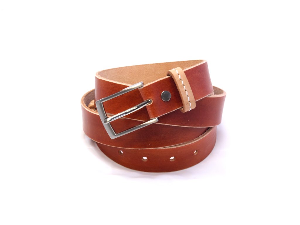 A bőr szíj gyártásához tehénbőrt használtak, amelyet egy cseh cserzőüzemben dolgoztak fel. Az öv 150 cm hosszúságban készül. 104,5 cm-es derékbőséggel rendelkezők számára készült. Az öv két övhurokkal van ellátva. Az egyik heveder fix, a másik mozgatható, és beállíthatja a saját hosszát. Mindkét hurok kézzel, fehér viaszos fonallal van varrva.