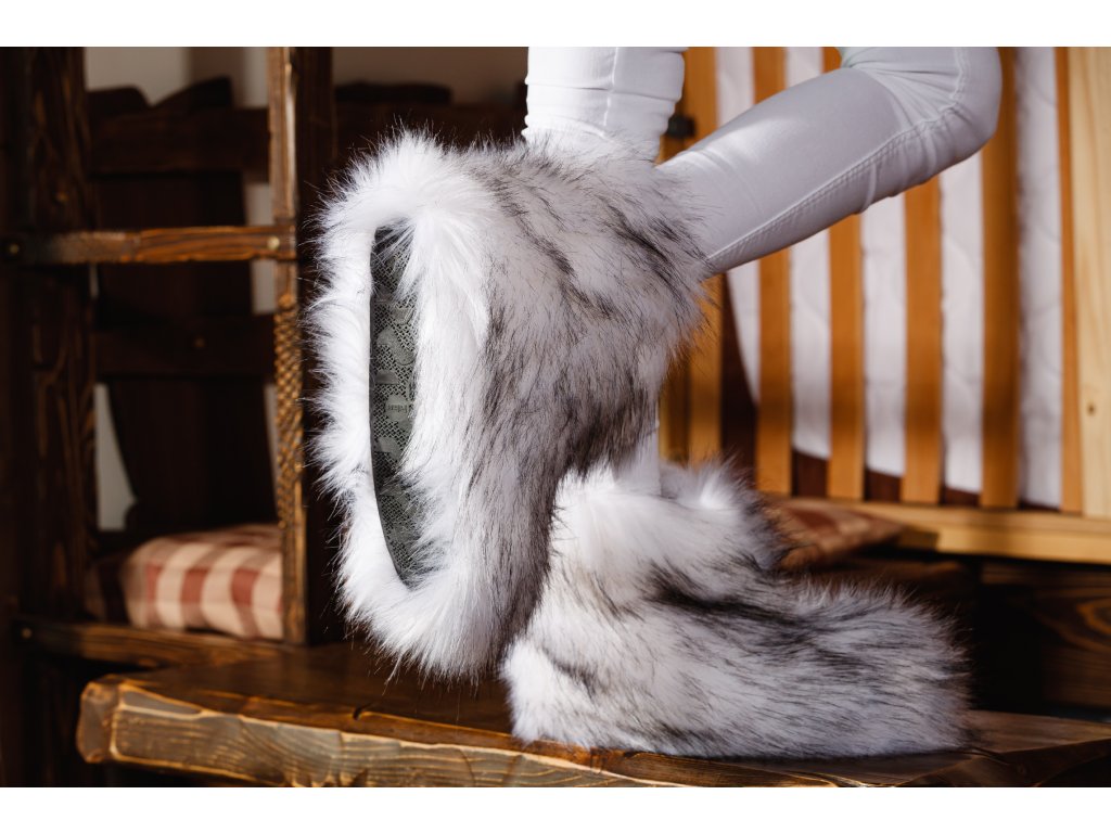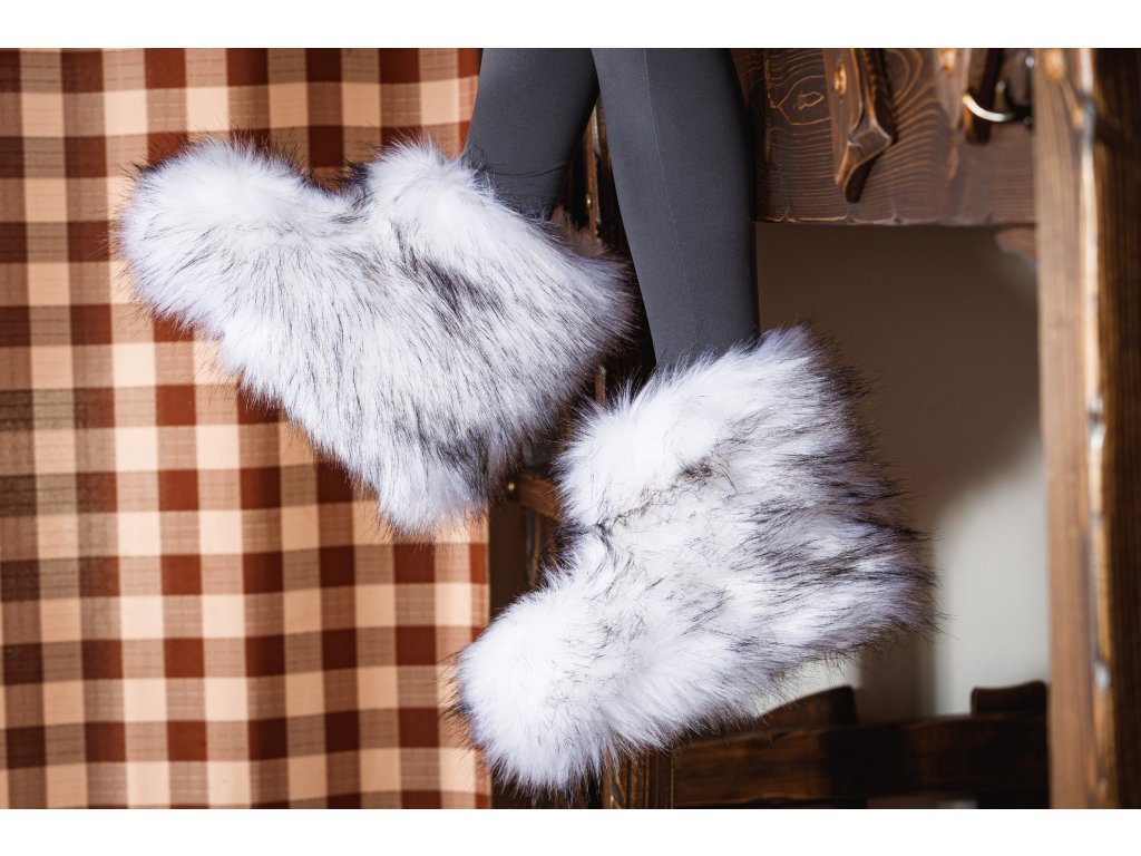 Anyag: 100% birkabőr / 100% birkagyapjú / talp csúszásmentes műanyag, Szín: fekete-fehér birka szőrme, Kapható méretek: 38-45